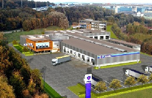 Nieuwbouw logistiek centrum met werkplaats voor onderhoud en herstellings-werkzaamheden, bedrijfskantoren en gemengde zones.